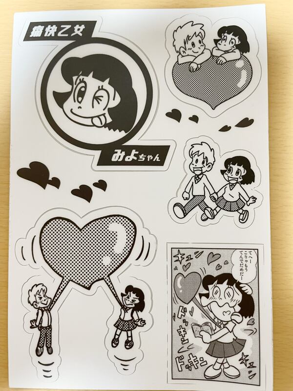 みよちゃんと田辺くんのステッカーです。台紙はポストカードサイズです。